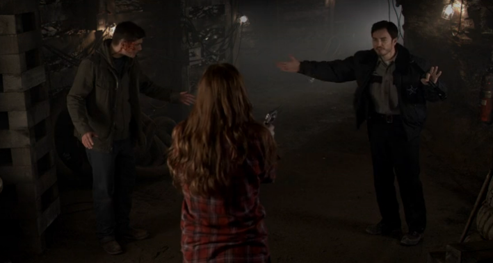 Let’s chat about plot changes. There are some that work, but also some that are weirdly ineffectual. For instance, the town is no longer “Valentine’s Bluffs” but is now “Harmony”. The significance of Valentine’s Day is just that it was when the accident happened. Also, twist, now it was Tom’s fault (T.J.). The dynamic of friends changes a bit, but I think that it gets a necessary contemporary update. Tom has a reason to leave town – his negligence killed someone. He failed miserably and comes home to sell the mine. Old flames flare, etc. Axel is still with Sarah in the future because Tom left, but this time it’s been ten years, and they have a kid. Also Axel is cheating on Sarah.