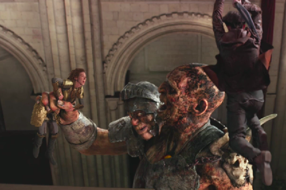 I decided he is the key to this film’s success. McGregor plays Elmont, the captain of King Ian McShane’s elite force. He’s the best in the kingdom, and in command of the next tier of bests. If this were a lesser movie, or a Disney movie, Elmont would be really good at killing things, but he’d be a total jerk. He would condescend the ever-loving snot out of poor Jack, try to romance the princess, and embarrass himself terribly in the process, while still believing that he’s the best thing in the world. Here’s an excerpt from a typical fantasy screenplay: