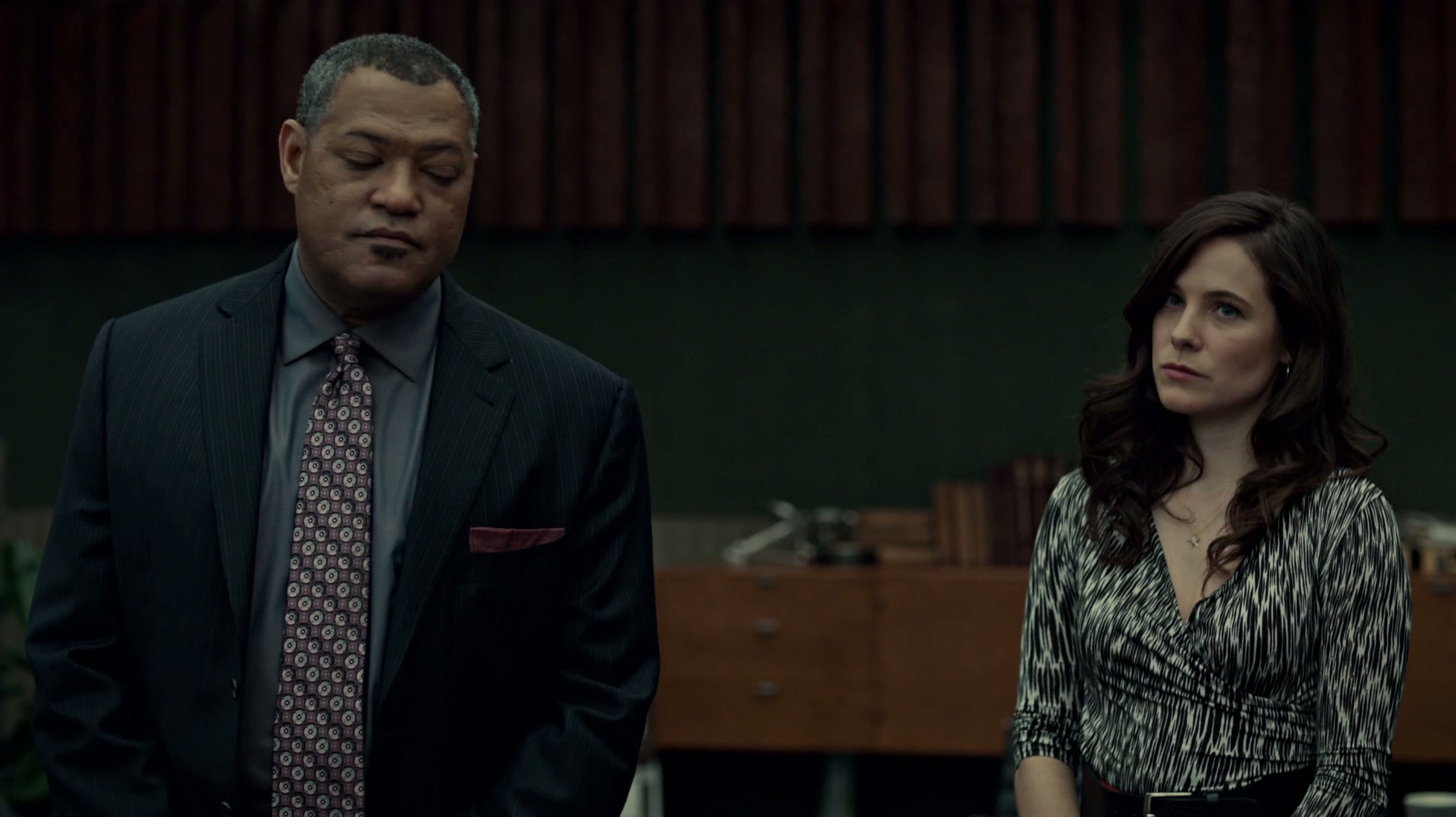 Okay, I’m getting a bit long-winded now. We can fast-forward through some parts. Will and the scientists figure out that the victims were diabetics! The killer is a pharmacist! Hannibal has let Freddie live! She posts something stupid about Will on the web and the killer escapes just as the FBI are closing in! They find a live victim locked in the trunk of his car and buried in fertilizer! Laurence Fishburne is scary when he shouts! The FBI briefly arrests Freddie and Jack tells her that they found her hair at the spooky-ass antler room! Jack tells her that he won’t arrest her if she stops posting shit about Will!