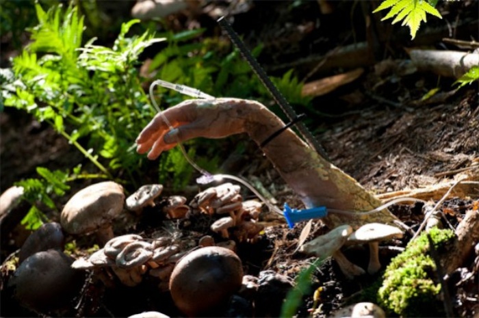 Now on to the weird shit! This week’s killer buries diabetics alive, keeping them in comas with an IV drip. And, even better, he’s using them as fertilizer to grow mushrooms. While Freddie Lounds (Lara Jean Chorostecki), the mysterious redhead journalist, watches in the wings and chats up a local cop, Will gets ready to do his empathy thing. It’s obviously taking its toll, and halfway through he sees GJH again. When he comes out of his unhappy place, he’s kneeling next to one of the half-rotted bodies. Which then grabs his arm. It’s not a hallucination. One of the victims isn’t quite dead. And you can see his teeth. Through his face. I actually said “oh my God that actually happened” out loud when watching that. Spoiler, though: he/she/couldn’t-really-tell-at-this-point dies on the way to the hospital.
