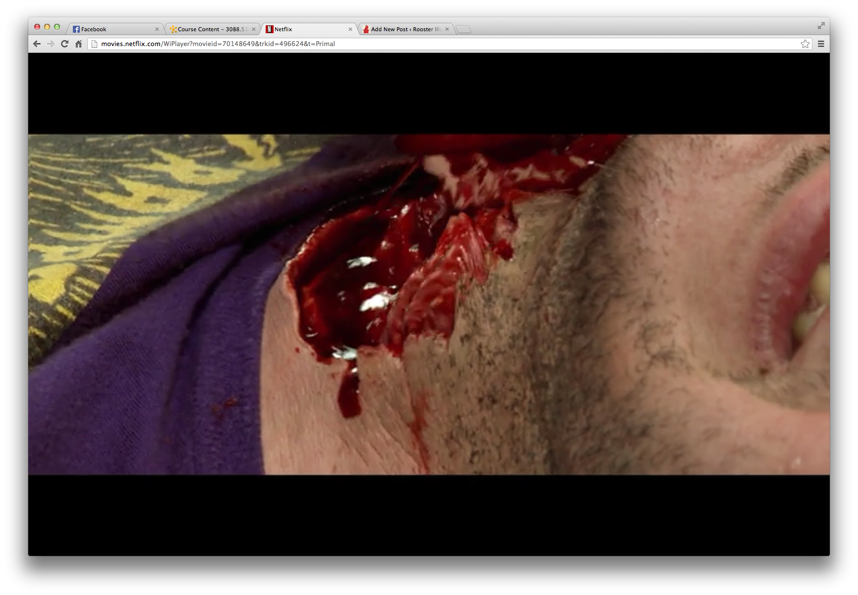 Oh hey! An Australian movie! Readers, you may remember the other Australian movie I reviewed, Black Water, and how much I really enjoyed that movie. In the past James made me watch Wolf Creek, which is actually a really good, scary torture film, so my track record with Australian horror is pretty good. I had high hopes for Primal.