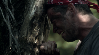 At this point, music starts playing in the woods around the group, softly at first. Initially, the group is curious, and even enamored. Then the music begins to echo their own restlessness and increased doubts in the reality of the situation. The mapping siblings (Erin and Darryl) begin to realize that their numbers aren’t adding up. And that’s where it gets crazy. Like, Darryl and Erin get into a sibling squabble that ends in a moment of pure terror and Darryl severing Erin’s leg at the hip with a rock and then pulling it off. This is observed with appropriate horror via binoculars, and the helplessness and displacement for the viewer, both the psychologist with the binocular and the audience, is very well executed.