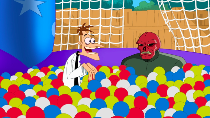 All right! Now that I’ve written over five hundred words without actually reviewing anything, let’s get down to business. So, I’ve established two things: first, that crossovers are usually stupid, and second, that Phineas and Ferb is a fantastic program. Obviously, this whole Marvel crossover thing was not originally part of the agenda of show runners Dan Povenmire and Jeff “Swampy” Marsh. More likely, some Disney executive told them, because their show is the most popular one Disney has, and The Avengers was the third highest grossing film of all time, that they had to make a crossover episode. Lesser writers would have thrown together some weak plot like the one I described in the second paragraph, and then execute it blandly just to get it over with. These guys took that plot, however, and imbued it with all the charm and wit and perfect dialogue of a typical episode. The important thing is that despite how big a deal this episode should be, the writers treat it, tonally, like any other episode, except it’s double-length. Phineas and Ferb fans will love the humor and inside jokes.