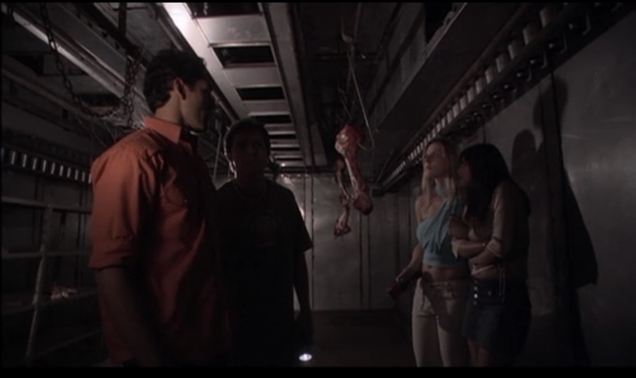 About half an hour into this movie, I’ve about had it. Unfortunately for me, there’s an hour left. The production value, even for low budget, is shoddy. There are shot inconsistencies, dialogue inconsistencies, pointless dialogue. Some basic logic gets ignored, like a tub of water that’s been full for 10 whole years. There was some wasted plot potential with the fresh meat on hooks when the kids first arrive at the slaughterhouse, but it apparently has nothing to do with anything. It takes 51 minutes to achieve a full on-screen death, so, there’s that. It’s accomplished with a pun. “I’ve gotta split.” UGH.