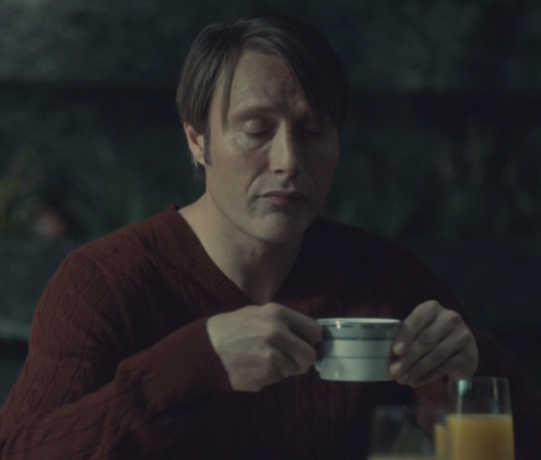 “Mukozuke” opens with Jack having breakfast at Hannibal’s house after a long night at Bella’s side in the hospital. Jack thanks Hannibal for saving his wife, but the good doctor doesn’t quite manage to hide the fact that he almost let her die: “As a doctor, I had no choice. It wasn’t what I could do for Bella, it was what I couldn’t do to you, Jack.” Hannibal even says that he’s cool with suicide if a person’s standard of living has sunk too low. There’s a brief moment where Jack gives him a look, because that’s some weird shit to say when your friend’s wife just tried to take her life. Ultimately, Jack waves aside his own doubts and tells Hannibal that he’s a “great friend.” Looks like Hannibal’s coin toss paid off.