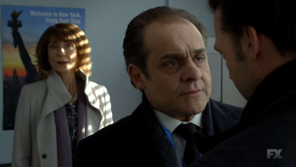 For some reason we spend a lot of time on the courier and his dysfunctional druggie family. Turns out his brother was the one who Abraham laid the smack down on. Small world. Ephraim gets a little handsy during a confrontation and the whole thing feels…forced. That weird blend of protocol and emotion I was talking about last week. He’s a logical character, and it feels like they’re trying to inject some of that like, “I’m a good person no matter what” House-esque attitude where it doesn’t belong. Either way, they meet the surviving pilot in a bar. He doesn’t look good. “You look pale,” says female agent, in the understatement of the year.