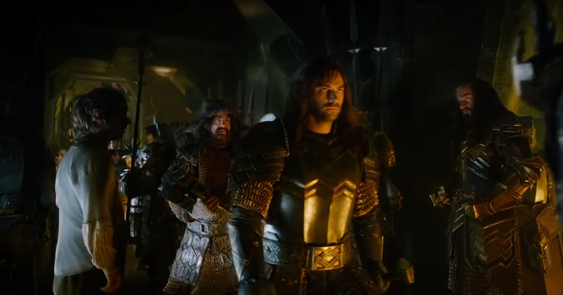 Say what you will about the rest of the characters, Bilbo is charming, and Martin Freeman’s performance is enough to lend a bit of charm to the franchise. Humor was not so much an issue in The Lord of the Rings, because all of the characters were very well defined. The hobbits were especially capable of inciting a chuckle, even in dark situations. The comedy in those films was very organic, because before anything too grim happened, the audience was allowed to get to know the characters, and it felt right that, for example, Merry and Pippin would continue joking with each other even when in captivity. Similarly, the relationship between Legolas and Gimli felt totally natural. None of the lightheartedness in LotR detracted from the gravity of the plot, though, because both comedy and tragedy were deliberately spaced throughout the film. Jackson seems to have forgotten his own clever writing style, peppering spectacular CGI expos with lazy fat jokes. Strangely enough, there’s no Bombur (Stephen Hunter), probably because they thought the image of a fat dwarf would detract from the heavy attitude of the whole trailer. Let’s take a quick look at how the dwarves are portrayed here: