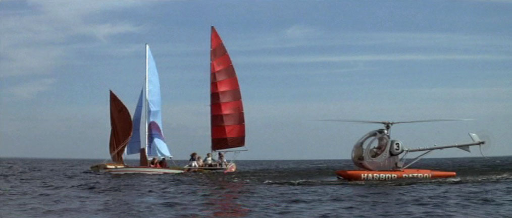 In my opinion, the biggest problem with Jaws 2 is the huge hole in the middle of the movie where there’s no shark because Roy Scheider is trying to convince everyone that there’s a shark. It’s not engaging, because his character isn’t ultimately that endearing, despite his heroics and family values. In the first movie he’s sort of the glue between Quint and Hooper, the law figure that has cultural control, he’s the executor of plot. In the sequel he doesn’t really have good responsibility, because he’s kind of a dick. He ostracizes himself, and the blame game escalates because it has to. The first movie was the cutesy, “There’s a shark I don’t care about money.” but now they have to go beyond that, so it becomes, “Martin is a little bit crazy and thinks there’s a shark what an idiot let’s go in the water despite mounting evidence.”