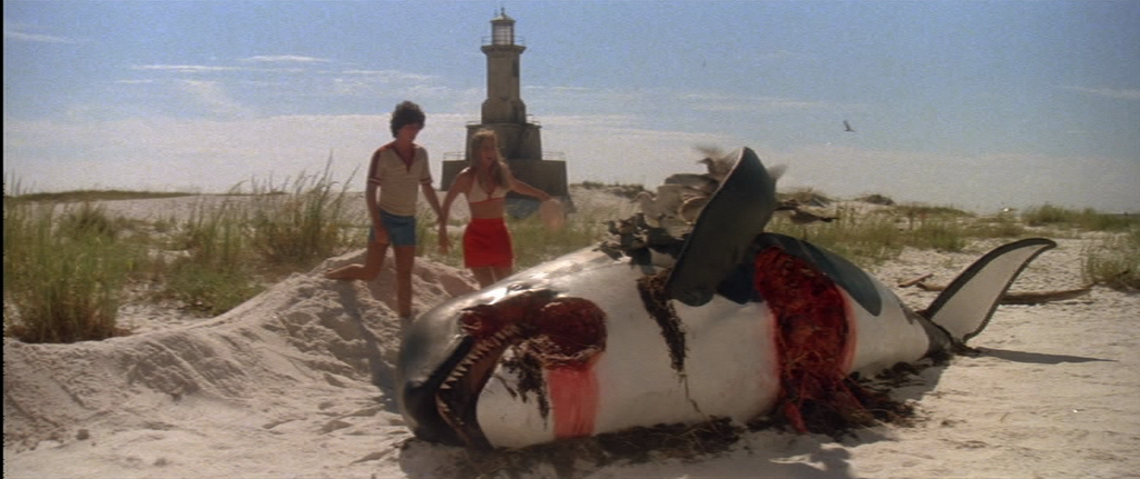 Jaws 2 features some repeat actors (Roy Scheider, for one), but not a repeat director. I think it’s fairly well-known that Spielberg despises sequels, and Jaws 2 was just not going to be in his repertoire. Really, the beginning of the movie makes it clear that we’re in the same universe, and while there’s similarities (for one, a large shark), this movie has a very different tone. We already know who the villain is, there’s no need for a dark night attack, instead we get a nostalgic violent one at the wreckage of the Orca. Yes, we’re still in Amity, and yes, this is a bit more ‘horror’ classic, with a focus on people, teenagers, and summer romance. Some people don’t feel that Jaws is horror movie, and Jaws 2 really tries to remedy that.