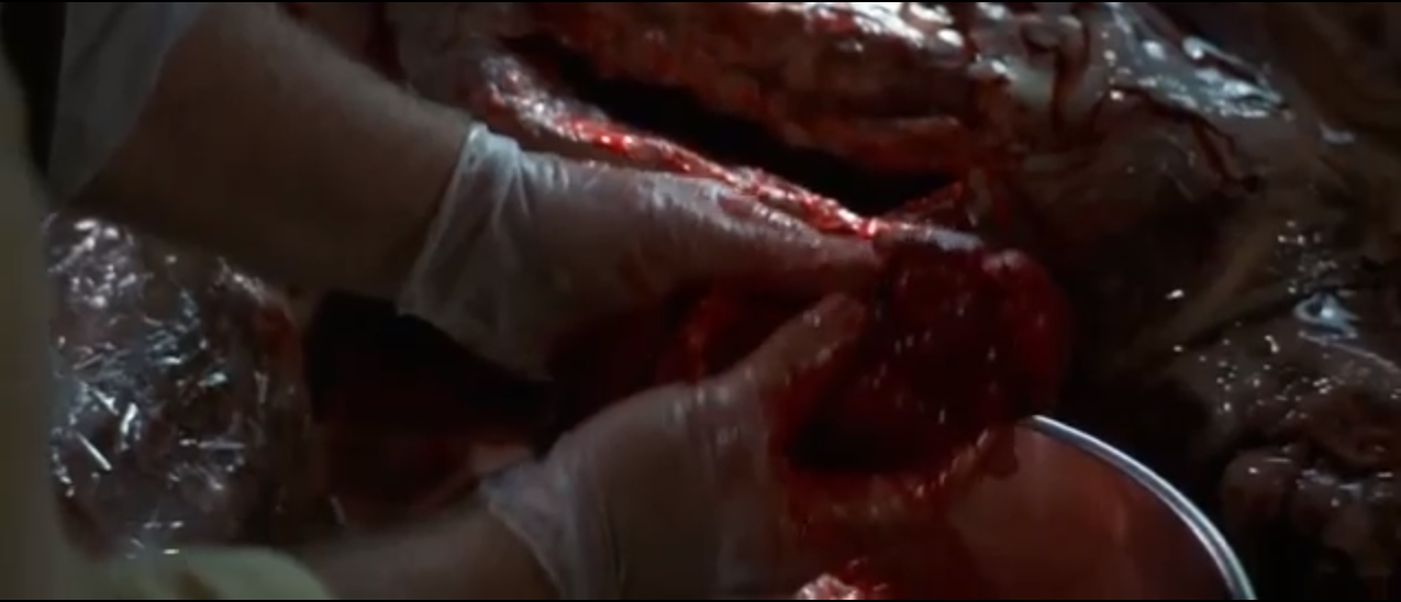 Nothing to see here, just your standard SAD Norwegians, what with their crazy suicide rituals and uh…ice coffins? The Thing also succeeds at transplanting classic horror elements, like dusty old houses, into a totally new environment. It’s familiar enough to be effective and new enough to be interesting (I strongly feel that Alien does this well also). The Thing does not rely on mystery too heavily, but rather rests quite comfortably in the intrigue portion of horror. Carpenter exposes you to weirdness in small doses at first, letting you see the burnt, mangled corpse of…something. You probably realized, like me, that something isn’t quite up with the dog, but what’s wrong with it is…well it’s disgusting. Props, John Carpenter, props. About a half hour in, you start to put the disgusting, disgusting pieces together. Let it be said that I am hardly a squeamish person, but for some reason the aliens are giving me the willies. There are articles about why humans pick specific types of monsters, but I like that these aliens are just literally everything all at once ever.