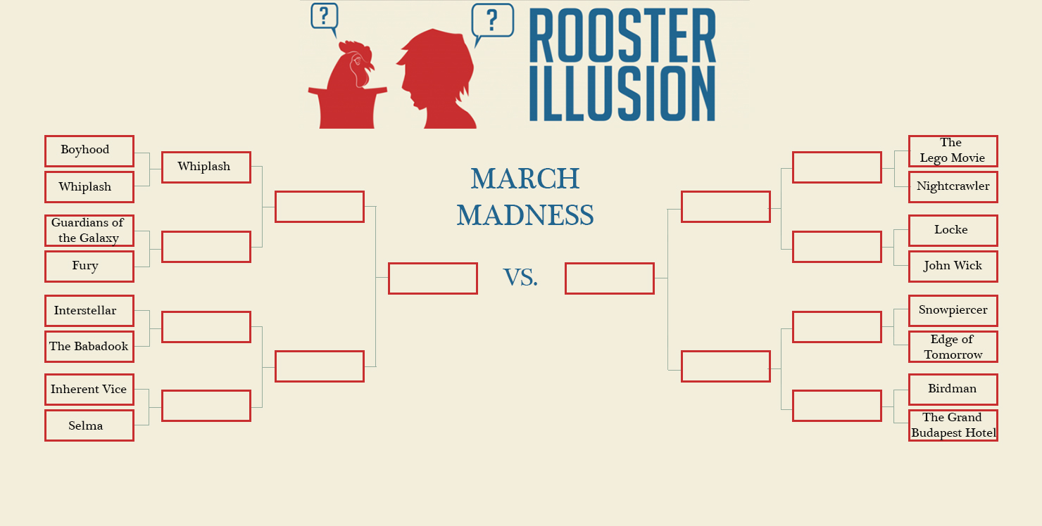 That’s right, folks. We are jumping on that bandwagon like nobody’s business. That, and we also thought it’d be nice to give our scant but loyal readership a chance to take part in the publication. So, throughout the month of March, we will be hosting a championship bracket to determine the best film of 2014. Through a long and arduous process, the writers and editors of Rooster Illusion selected the sixteen competitors, but you, dear reader, will have to select the winner. A new poll will be available every other day, so check back regularly. Also, keep in mind that if you need a refresher on any of these films, we’ve reviewed all of them.