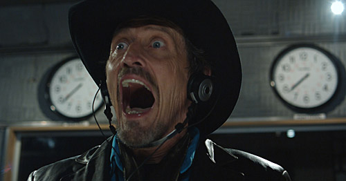 Escalation is swift, but pacing is expertly managed in the way of smooth delivery by Stephen McHattie as Mazzy. The radio station receives reports of a riot situation that’s more World War Z, reports of tons of people storming a doctor’s office. A racist singing group (a musical production of Lawrence of Arabia involving face paint…) is a temporary distraction, but one of the girls in the group is clearly affected by the same issue as the woman who ambushed Mazzy’s car earlier that morning.