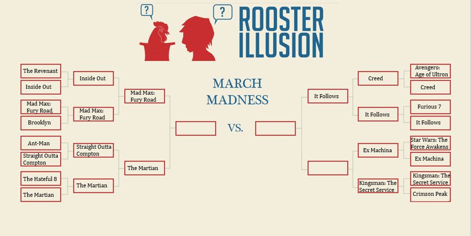 Well, it was really close, but The Martian managed to win out over Straight Outta Compton, which means it will have the dubious pleasure of facing off against Mad Max: Fury Road in our first semifinal. But first, we’ve got one more quarterfinal: Ex Machina vs. Kingsman: The Secret Service. Whoever wins will go up against It Follows in the semis. And, look, guys, I’ve tried to remain impartial… but, really, this shouldn’t be a tough call. Need a refresher on either film? Click the links to read our reviews, but don’t forget to come back and vote after.