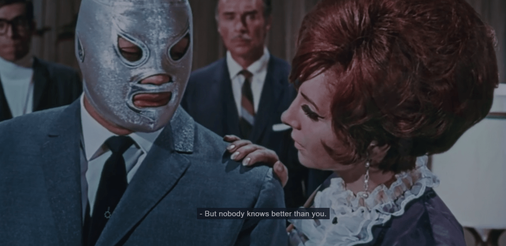 El Santo starred in well over 50 movies and I’ve seen a good handful of them. This is the first one that, honestly, I felt a little underwhelmed by. Maybe I set my sights too high with “Mexican wrestler”, “time machine”, and “Dracula’s treasure”. While the screenplay itself has a lot of unintentional gems—about as many as you’d expect from a movie where a vampire-fighting luchador is widely regarded as the world’s preeminent authority on time travel—it also made a few head-scratching blunders. The biggest of these, of course, and the most unforgivable, is the fact that El Santo himself never actually travels back through time. The first half an hour or so unfolds as a by-the-numbers Dracula fest as Santo twiddles his thumbs in the present day. Once his time traveler returns to the present, they set out to locate the vampire’s tomb and treasure, both of which are conveniently nearby. We’re a good 45 minutes into the movie before our first wrestling occurs. Call me old fashioned, but that’s too long to wait.