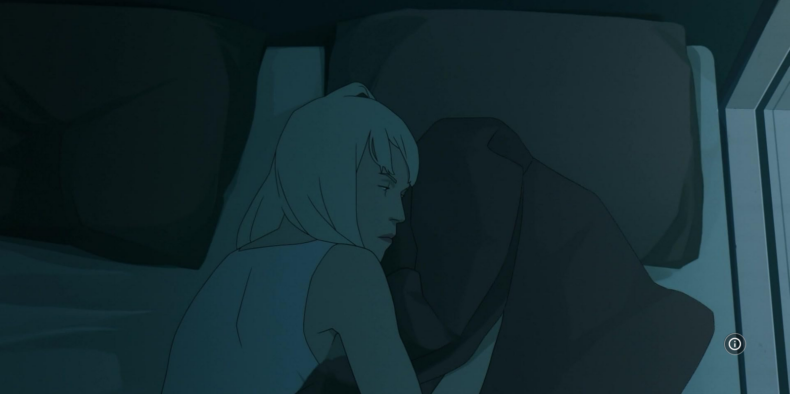 Mars Express excels at worldbuilding, delivering exposition matter-of-factly and efficiently. It reminds me of Robert Heinlein’s writing. Rather than have a character turn to an audience surrogate and say “As you know well, AI robots have been around since the year 2XXX, and this is how they fit into our daily lives…”, the film enriches our understanding of this future society with offhand lines and visual cues. People who exist in the world do not constantly feel the need to comment upon its workings, but it’s still refreshing when a sci-fi movie doesn’t fall into that trap.