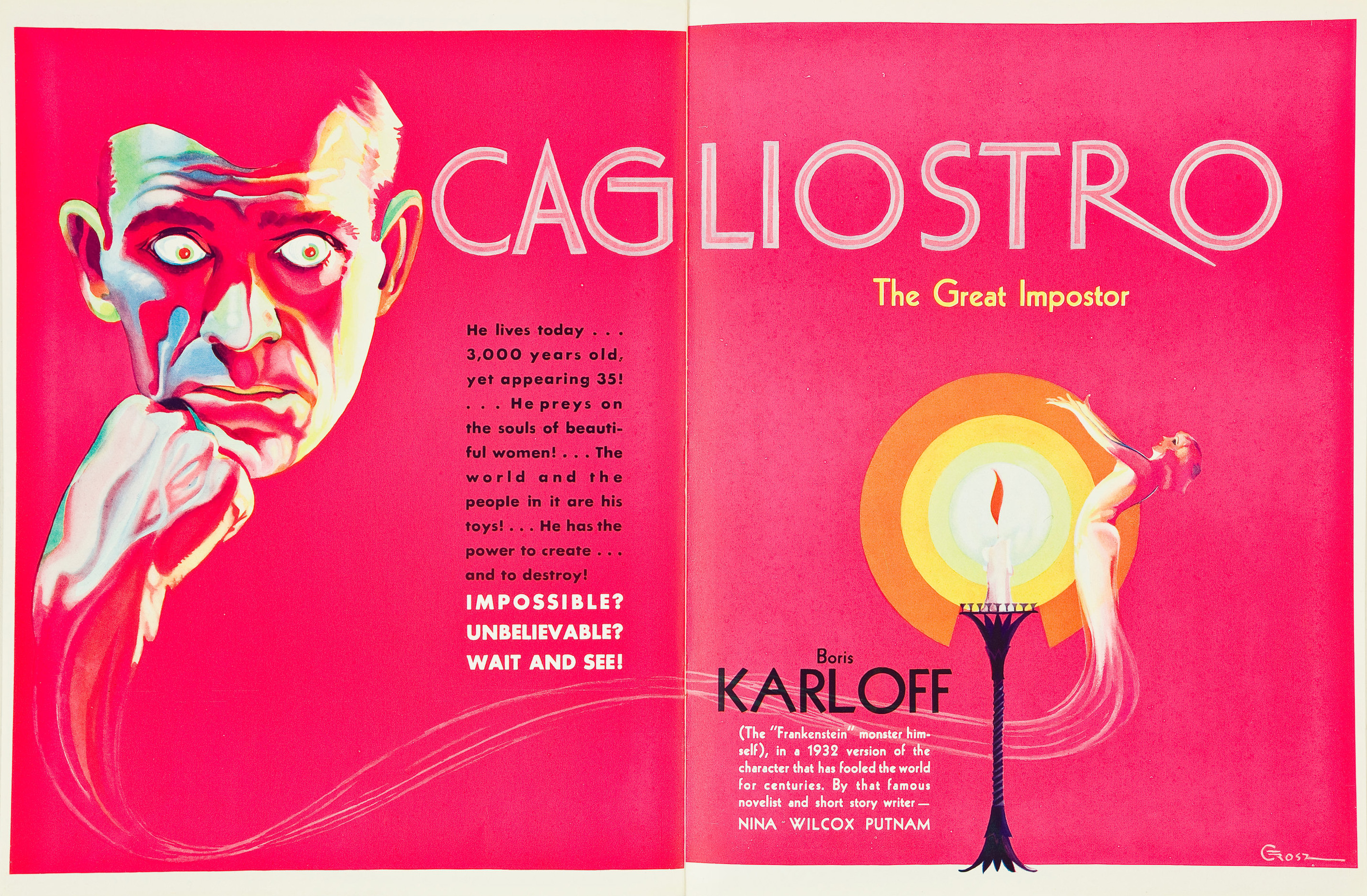 Studio head Carl Laemmle Jr. tasked writers Richard Shayer and Nina Wilcox Putnam (who also wrote the first draft of the 1040 tax return, and you can bet I’ll be remembering that in April) with writing a treatment drawing on the fabled King Tut’s Curse for inspiration. Shayer and Putnam came back with Cagliostro, a San Francisco-set tale of an immortal Egyptian magician hunting women who look like the lover who dumped him centuries earlier (2)**.