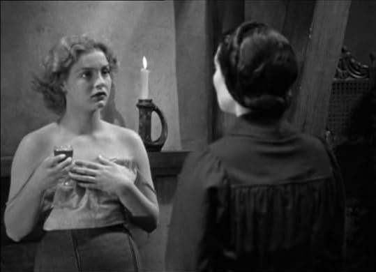 At one point, Zaleska tries to explain her condition to Dr. Garth without revealing her true nature, telling him that she is plagued by “Someone… something that reaches out from beyond the grave and fills me with horrible impulses.” It is Garth’s misguided advice to “confront” these impulses and use her willpower to overcome temptation that lead to the film’s famously homoerotic “vampire seduction” scene. Zaleska, a painter in addition to being an aristocrat, has her manservant/familiar Sandor bring a model to her studio. She tells the young woman to bare her shoulders—the censors at the Production Code Administration (PCA) were adamant that “there will be no suggestion that she undresses”—and quickly succumbs to her aforementioned “horrible impulses” (1).