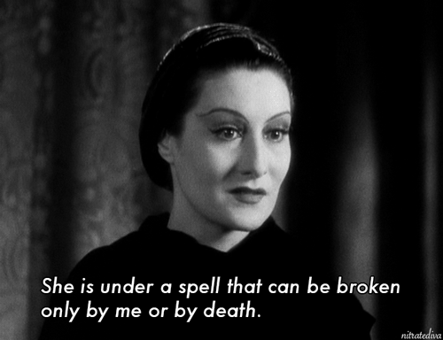 In yet another case of art triumphing over censorship, the scene manages to do both of those things. This subtext is largely absent from the rest of the film, returning only briefly for a scene in which Countess Zaleska hovers above a hypnotized Janet (Dr. Garth’s rich, lovelorn secretary, played by Marguerite Churchill), then slowly leans in towards her…and leans…and leans…and then is interrupted. The modern viewer can’t help but wonder if Marya and Janet might have been able to find more in common than a shared affection for Dr. Garth.